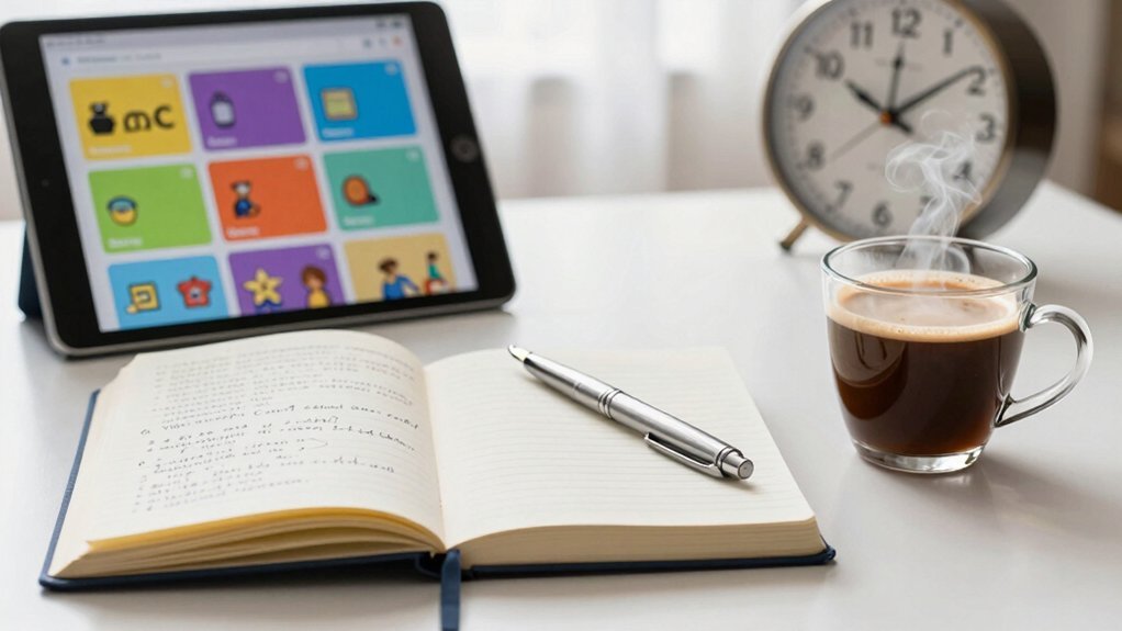Flexibility gets you into the routine, but the real boost comes from the quality of the support materials you use. High‑quality flashcards, audio recordings, and worksheets keep you engaged and improve retention. Choose resources that present content clearly and simply; well‑designed material reduces confusion and speeds comprehension. Aim for a comprehensive set that spans vocabulary, grammar, and conversation topics so you build a balanced foundation. Interactive tools—especially videos with native‑speaker pronunciation—sharpen your listening and speaking accuracy. Finally, pick portable, travel‑friendly options like compact cards or downloadable audio so you can practice anywhere, turning idle moments into productive study sessions. These choices guarantee your 30‑day French sprint stays effective and enjoyable.
