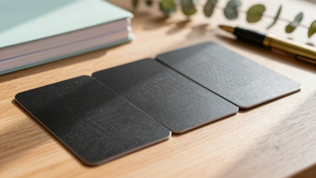 Durability matters when you pick flashcards, because frequent shuffling and handling can quickly wear down flimsy paper. Choose laminated cardboard or plastic cards; they resist bending, crumpling, and tearing far better than thin paper. A thicker stock adds structure, keeping each card flat and preventing warping after countless study sessions. Opt for a matte finish if you study under bright lights—glare drops, and the surface feels comfortable in your hands. Waterproof or washable materials let you wipe away spills or fingerprints without damaging the print, extending the deck’s lifespan. By investing in robust, high‑quality cards, you avoid constant replacement, keep your learning flow uninterrupted, and protect the time you’ve spent building your deck.