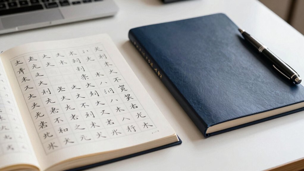 When you pick a practice notebook, check the paper’s durability and material so it won’t tear while you’re learning. Look for ink that fades slowly and a groove design that guides your strokes. Finally, make sure the pen feels comfortable in your hand and that refills are easy to find.